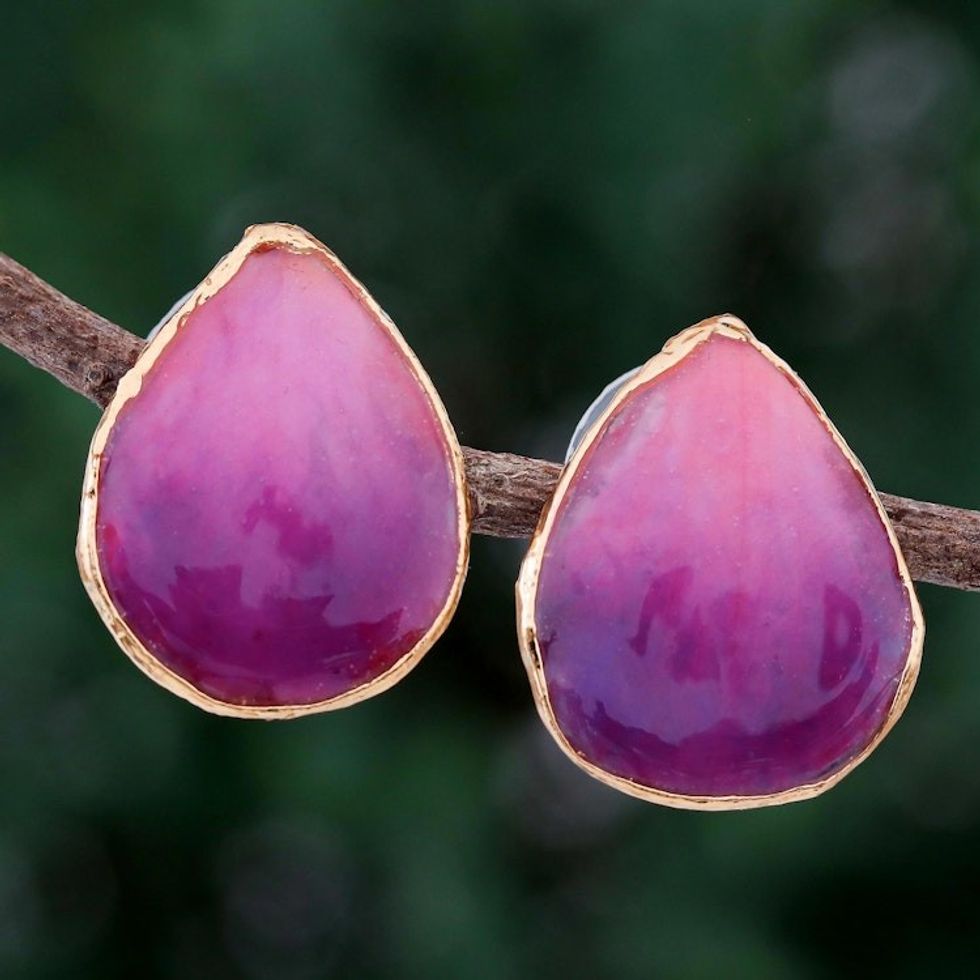 I bought these as a gift for my mom, who loves jewelry and bright colors. They are wonderfully light weight and very vibrant in color. She loved that they show up nicely from a distance but are not too long. In addition, it's wonderful to have a pair that is unique as these earrings are made from real petals.