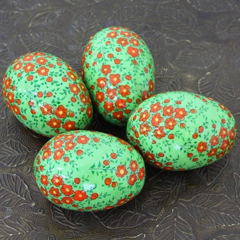 Hand Crafted Papier Mache Eggs with Floral Motif Set of 4 'Blooming Buds' Item ID: 2671793695