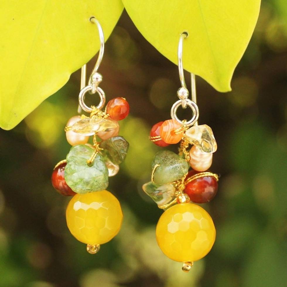 Hand Crafted Pearl and Quartz Beaded Earrings 'Sunshine Love' Item ID: 2669927563