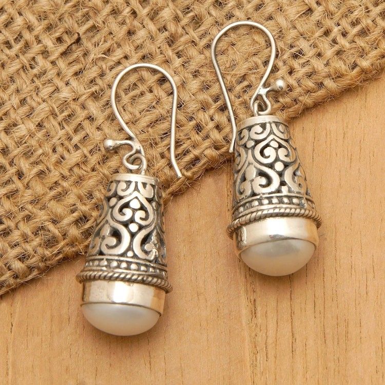 Hand Crafted Pearl and Sterling Silver Dangle Earrings 'Silvery Light' Item ID: 2671702011