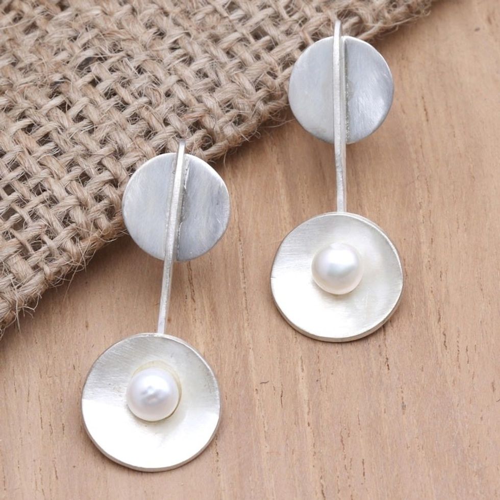 Hand Crafted Pearl and Sterling Silver Drop Earrings 'Silver Spoons' Item ID: 2671745475