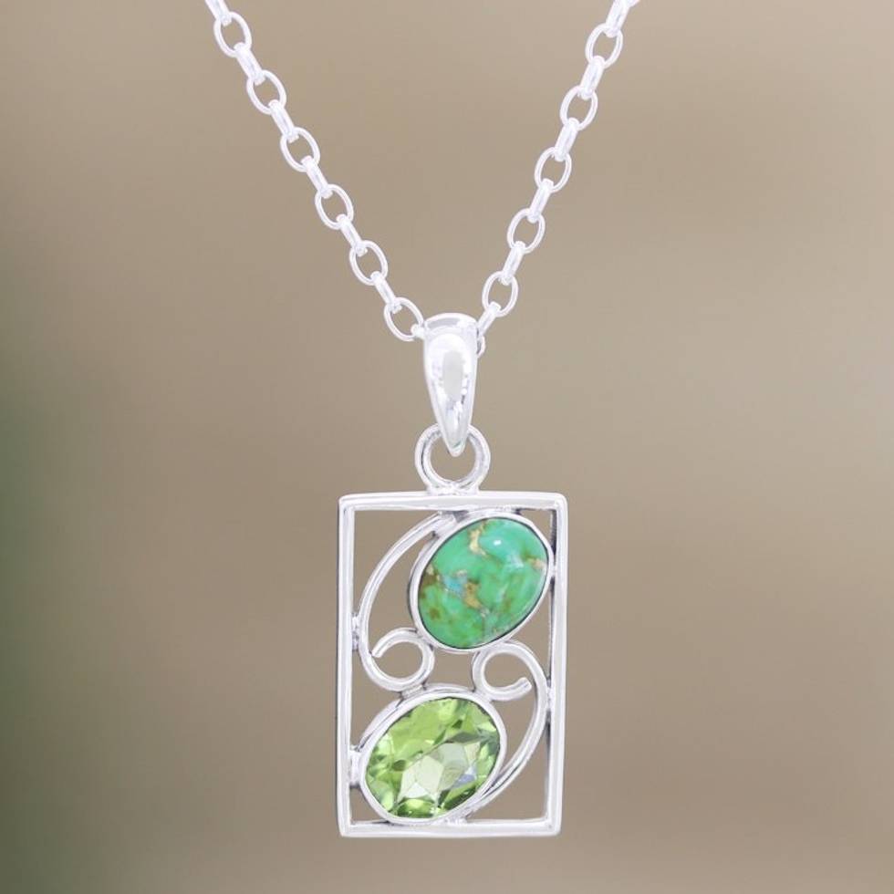 Hand Crafted Peridot Green Turquoise Necklace from India 'Sweet Companions' Item ID: 2671787519