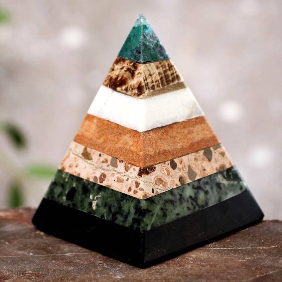 Hand Crafted Peruvian Gemstone Pyramid Sculpture 'Empowered' Item ID: 2669891366