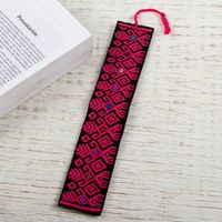 Hand Crafted Pink on Black Embroidered Cotton Bookmark 'Pink Dancers' Item ID: 2671808831