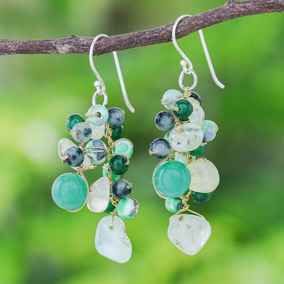 Hand Crafted Prehnite and Quartz Dangle Earrings 'Green Countryside' Item ID: 2671799680