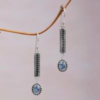 Hand Crafted Rainbow Moonstone Dangle Earrings from Bali 'Falling Rainbow Drops' Item ID: 2671479182