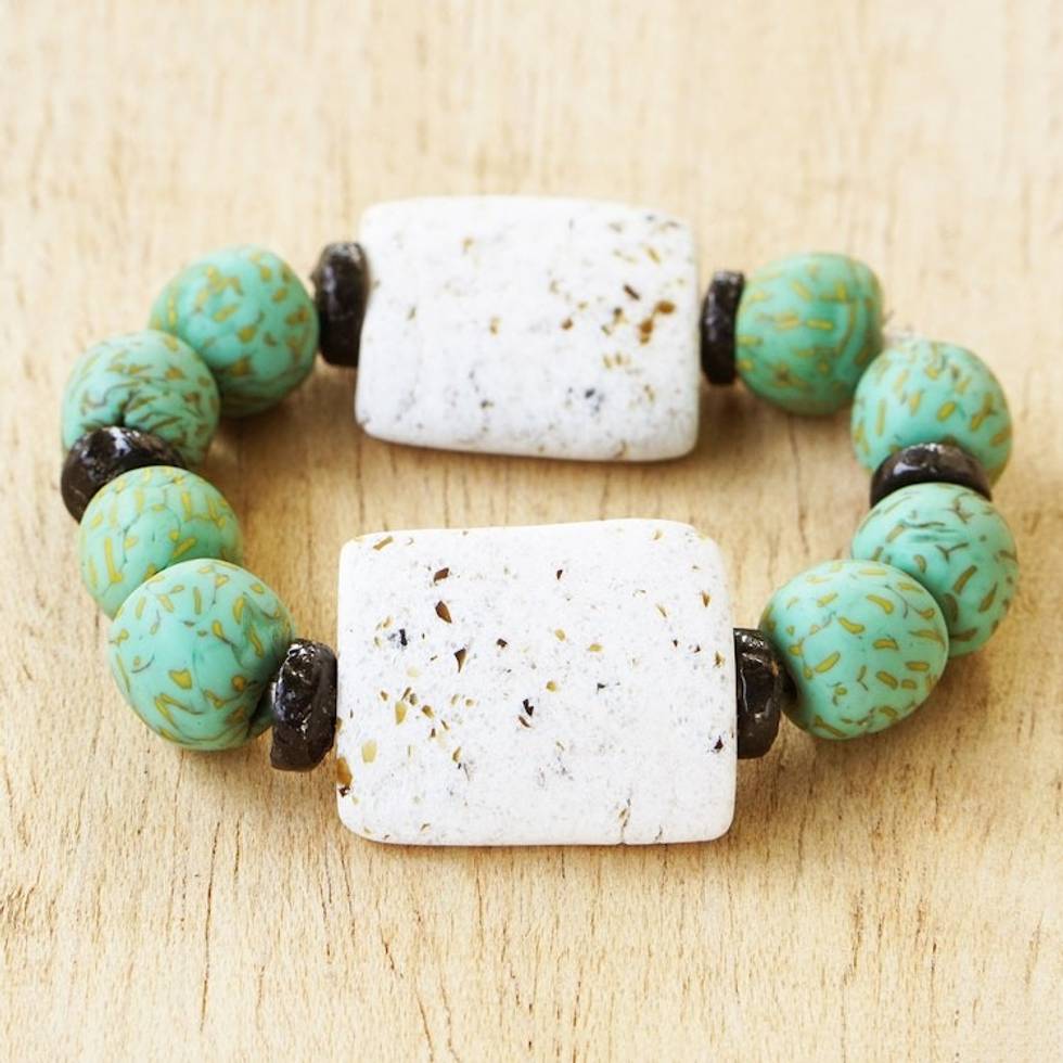 Hand Crafted Recycled Glass Beaded Bracelet 'Life and Other Stories' Item ID: 2671804319