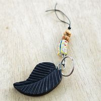Hand-Crafted Recycled Glass Beaded Ebony Wood Leaf Keychain 'Chic Leaf' Item ID: 2671804994