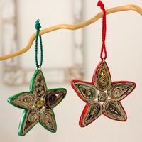 Hand Crafted Recycled Paper Christmas Ornaments Set of 4 'Stars of Joy' Item ID: 2669923646