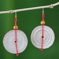 Hand Crafted Recycled Paper Dangle Earrings 'Hot Breakfast' Item ID: 2671807077