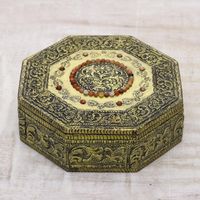 Hand Crafted Repousse Brass Jewelry Box 'Golden Treasures' Item ID: 2669924467