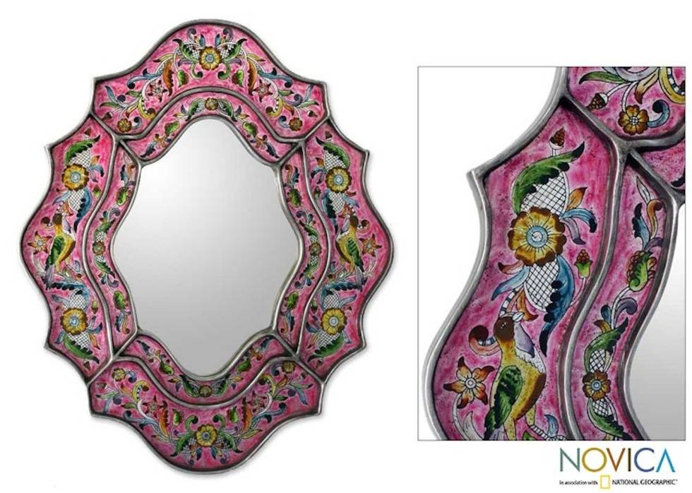 Hand Crafted Reverse Painted Glass Wall Mirror 'Wild Orchids' Item ID: 2671797888