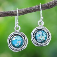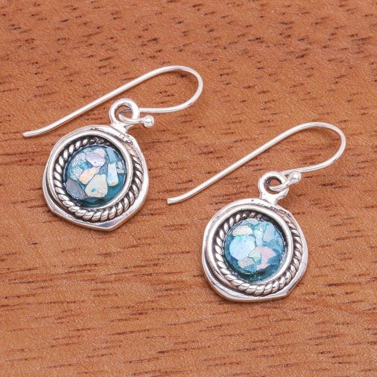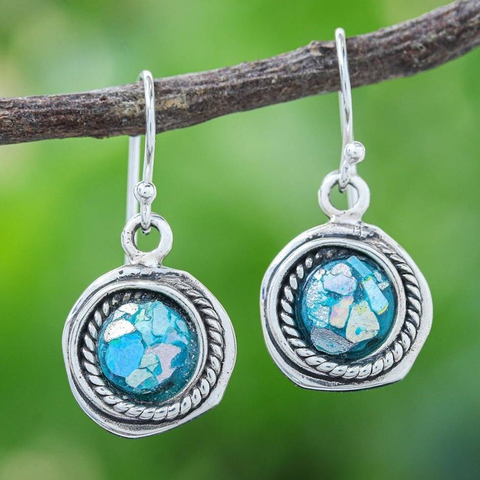 Hand Crafted Roman Glass Dangle Earrings 'Glacier Bay' Item ID: 2671799838