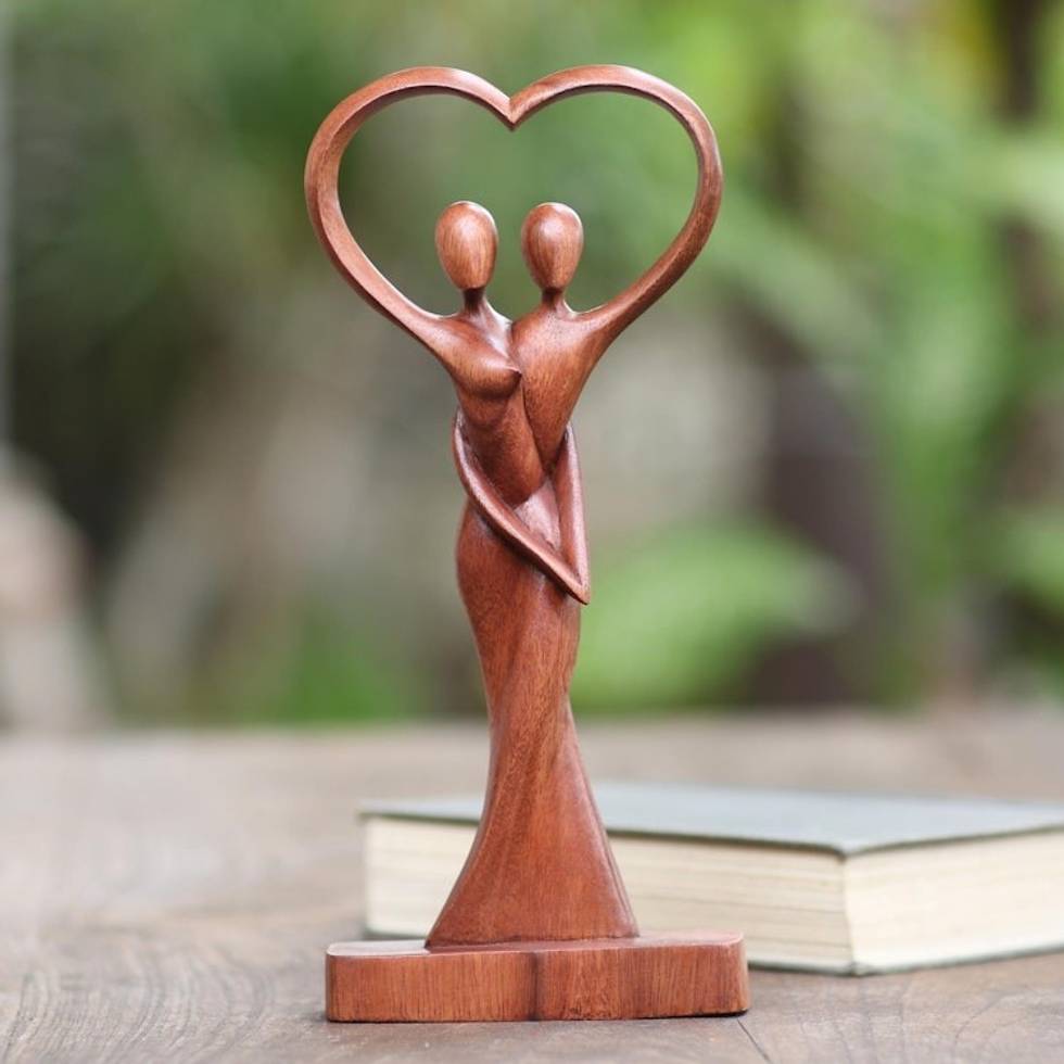 Hand Crafted Romantic Suar Wood Sculpture 'Falling in Love' Item ID: 2671746509