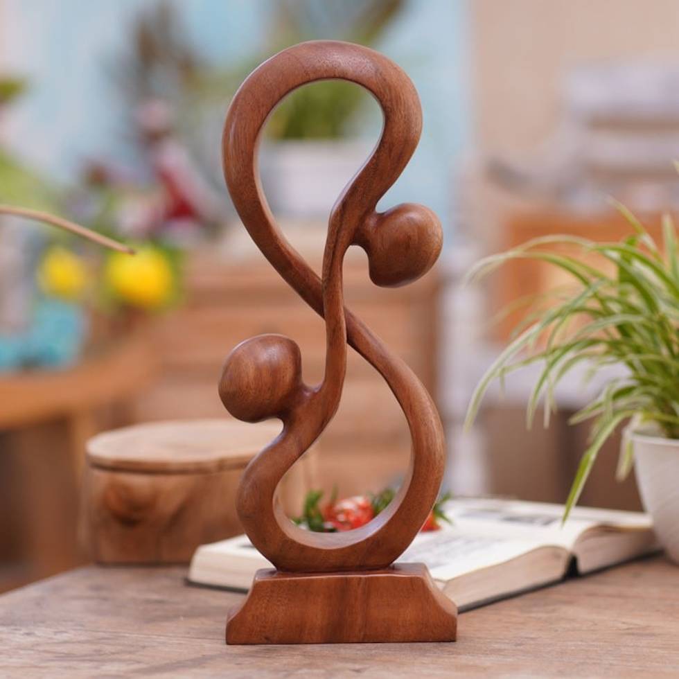 Hand Crafted Romantic Wood Sculpture 'Acrobat Lovers' Item ID: 2671699301