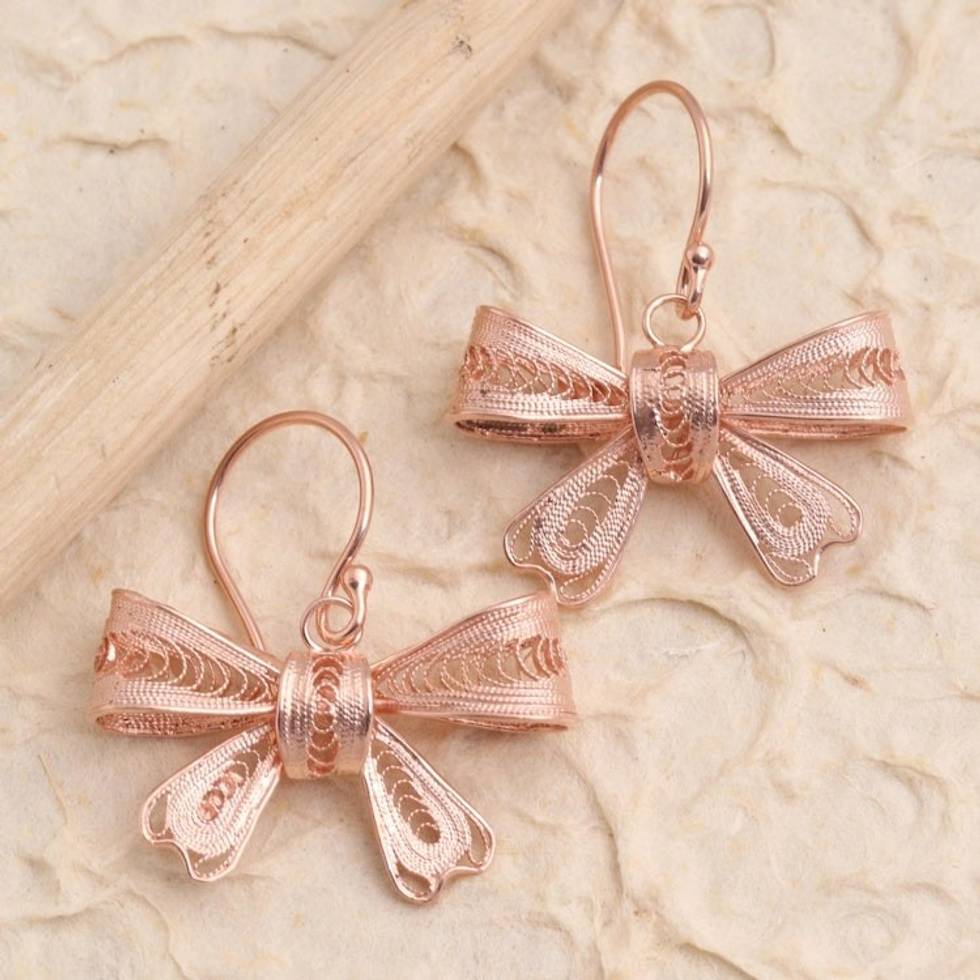 Hand Crafted Rose Gold Plated Dangle Earrings 'Lovely Ribbon' Item ID: 2671745771