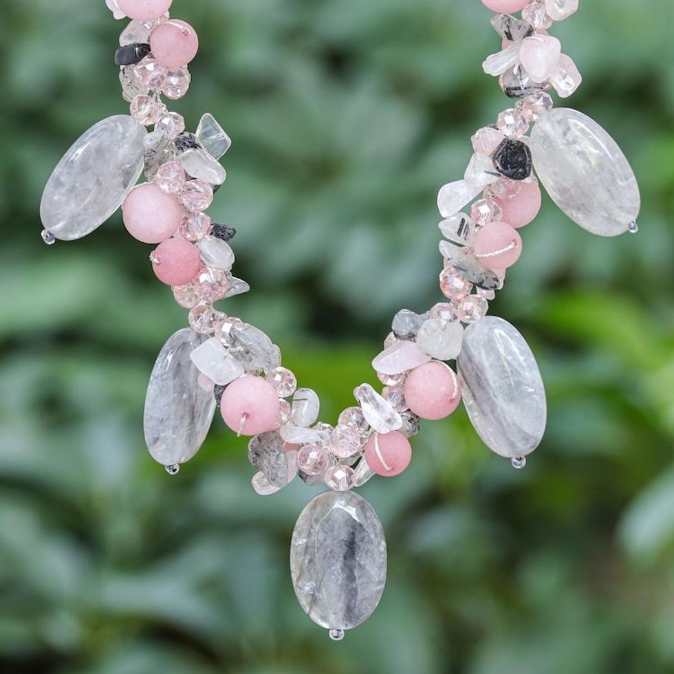 Hand Crafted Rose Quartz and Agate Pendant Necklace 'Frozen Flowers' Item ID: 2671797719