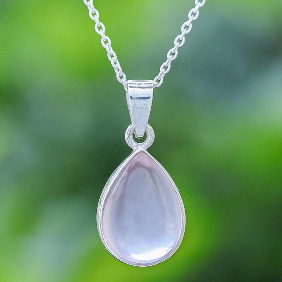 Hand Crafted Rose Quartz Pendant Necklace 'Rose Charm' Item ID: 2671800405