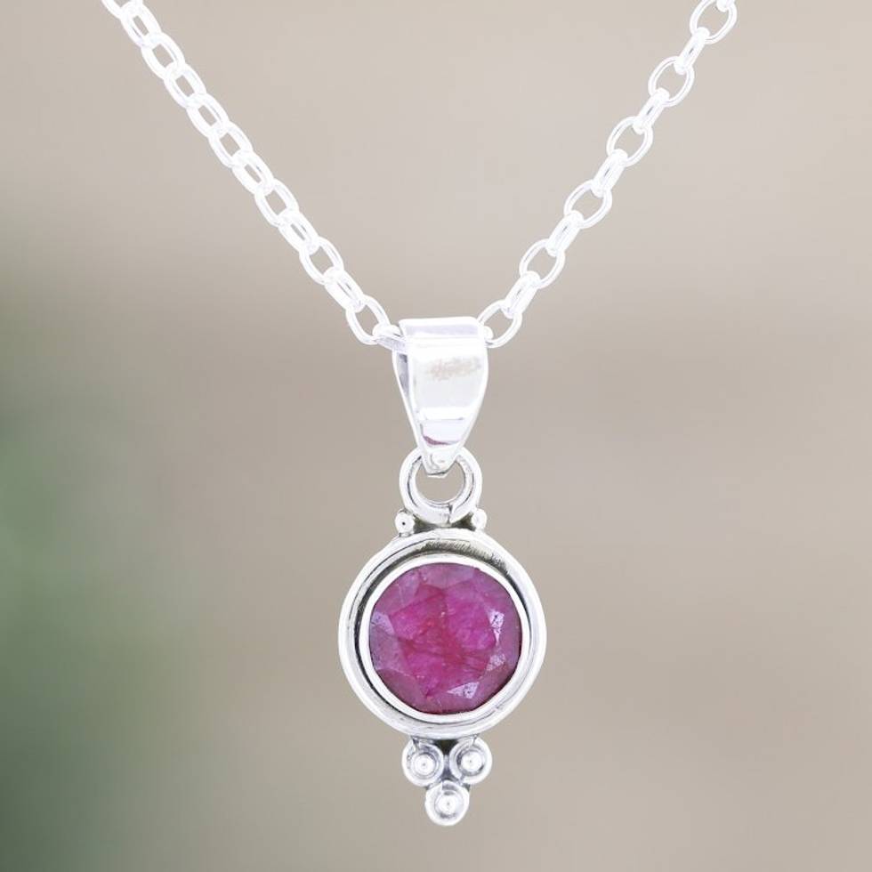 Hand Crafted Ruby and Sterling Silver Pendant Necklace 'Air Bubble in Pink' Item ID: 2669924462