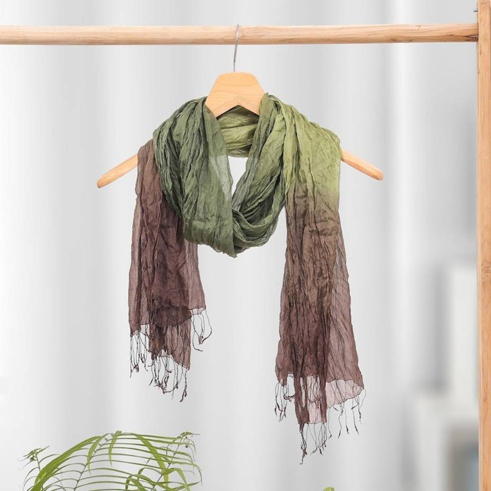 Hand Crafted Silk Scarf from Thailand 'Earth Day' Item ID: 2671641277