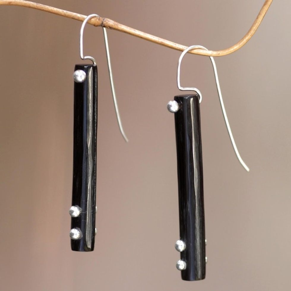 Hand Crafted Silver Accent Earrings with Water Buffalo Horn 'Benoa Moonlight' Item ID: 2671702533