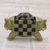 Hand Crafted Soapstone Coasters and Holder Set of 6 'Elephant Checkers' Item ID: 2671794338