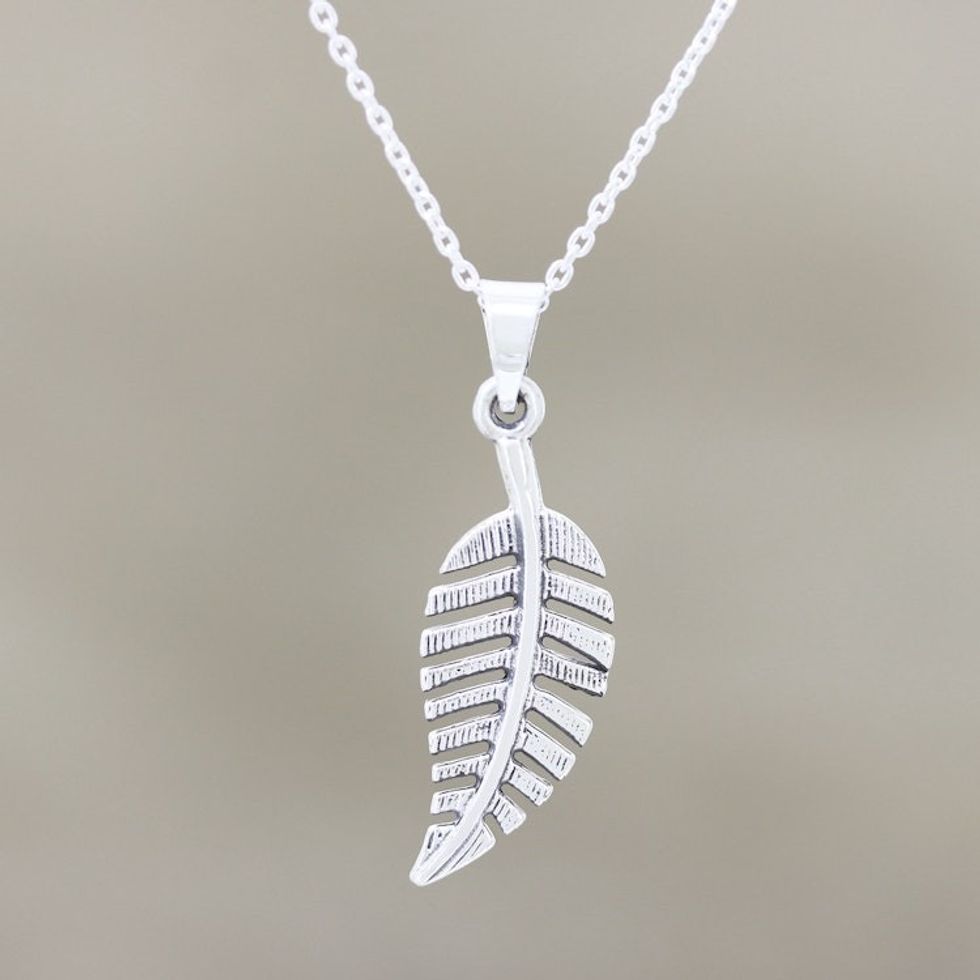 Hand Crafted Sterling Leaf Pendant Necklace 'Begampur Leaf' Item ID: 2671790004