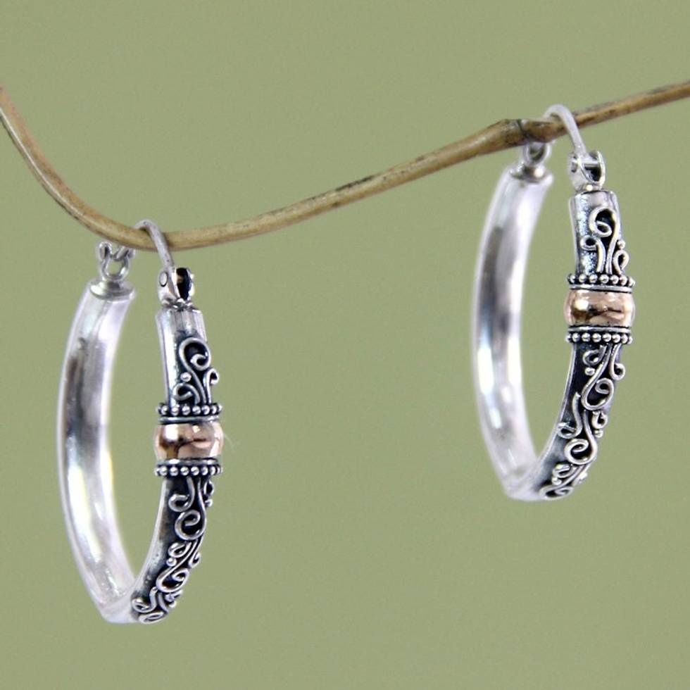 Hand Crafted Sterling Silver and 18k Gold Hoop Earrings 'Floral Tendrils' Item ID: 2669922359