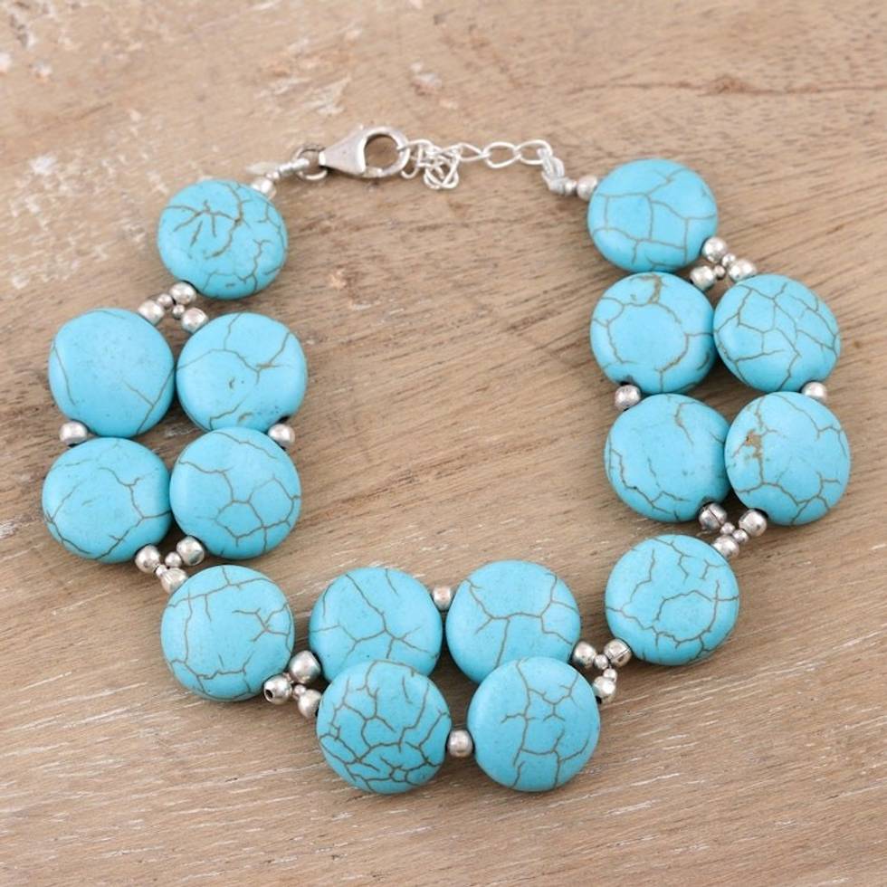 Hand Crafted Sterling Silver and Calcite Beaded Bracelet 'Like Clockwork' Item ID: 2671789226