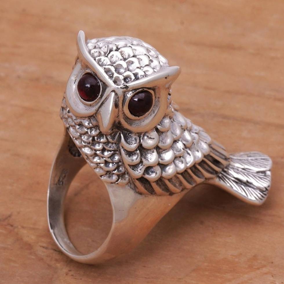 Hand Crafted Sterling Silver and Garnet Cocktail Ring 'Wise Guardian' Item ID: 2671734234