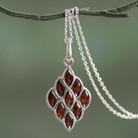 Hand Crafted Sterling Silver and Garnet Pendant Necklace 'Radiant Honeycomb' Item ID: 2671620619
