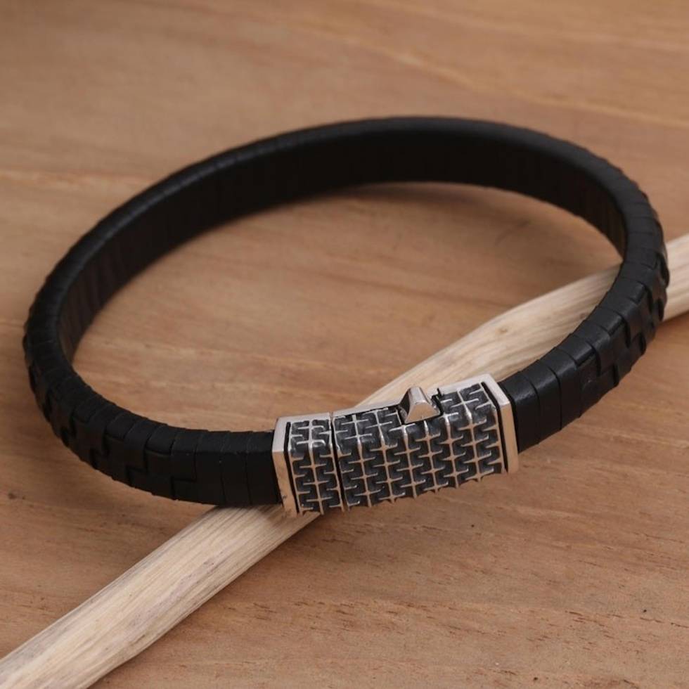 Hand Crafted Sterling Silver and Leather Braided Bracelet 'Order of the Cross' Item ID: 2671746556