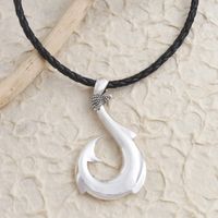 Hand Crafted Sterling Silver and Leather Pendant Necklace 'Tremendous Hook' Item ID: 2671746402