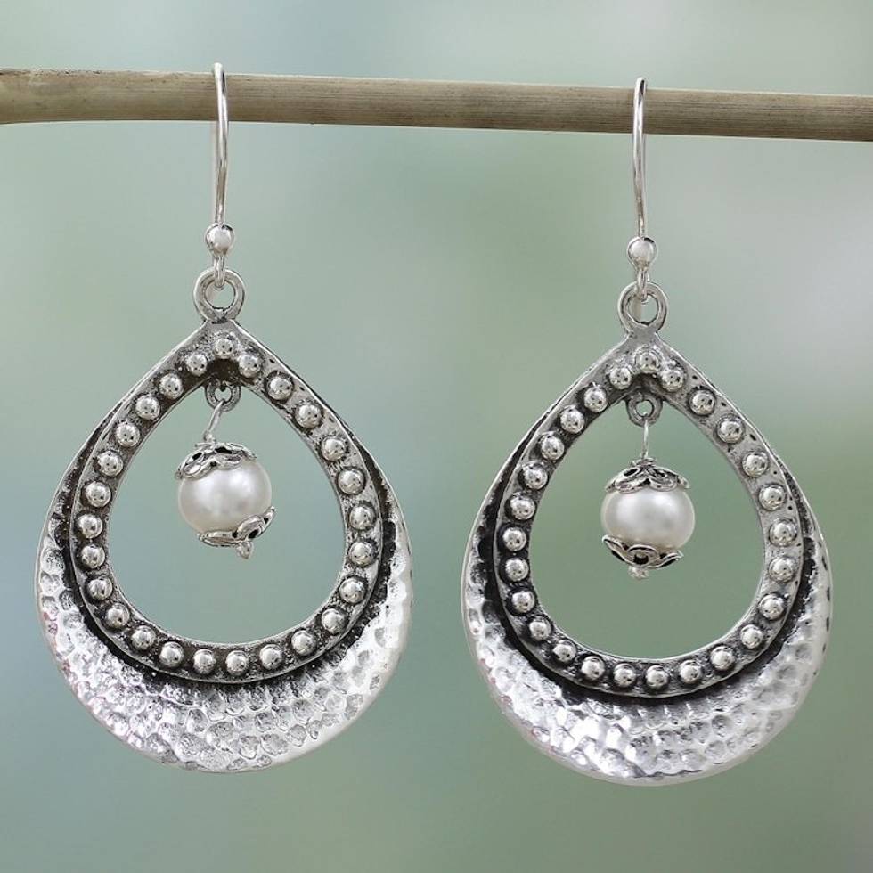 Hand Crafted Sterling Silver and Pearl Earrings 'Grace' Item ID: 2671794979