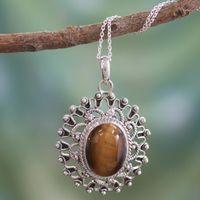 Hand Crafted Sterling Silver and Tigers Eye Pendant Necklace 'Tawny Sun' Item ID: 2671794377
