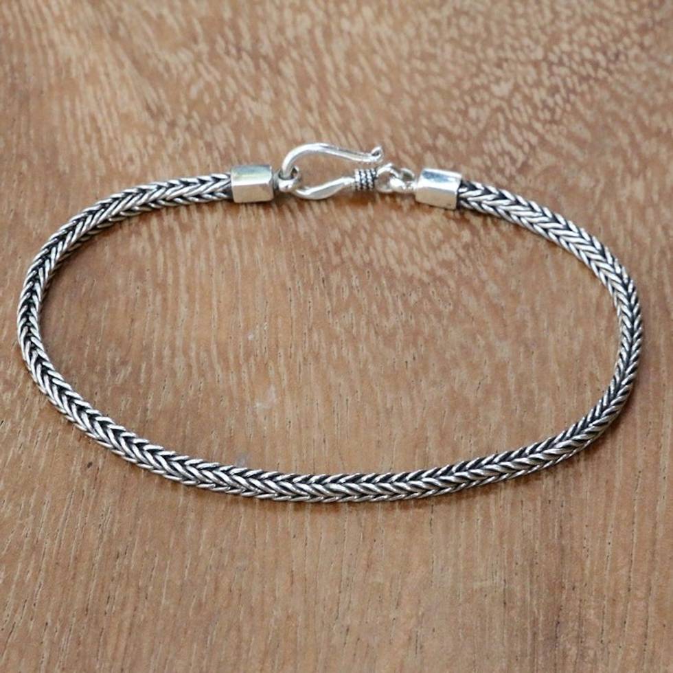 Hand Crafted Sterling Silver Chain Bracelet from Bali 'Dragon's Tail' Item ID: 2669994462