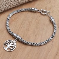 Hand Crafted Sterling Silver Charm Bracelet from Bali 'Tall Tree in Silver' Item ID: 2669920998