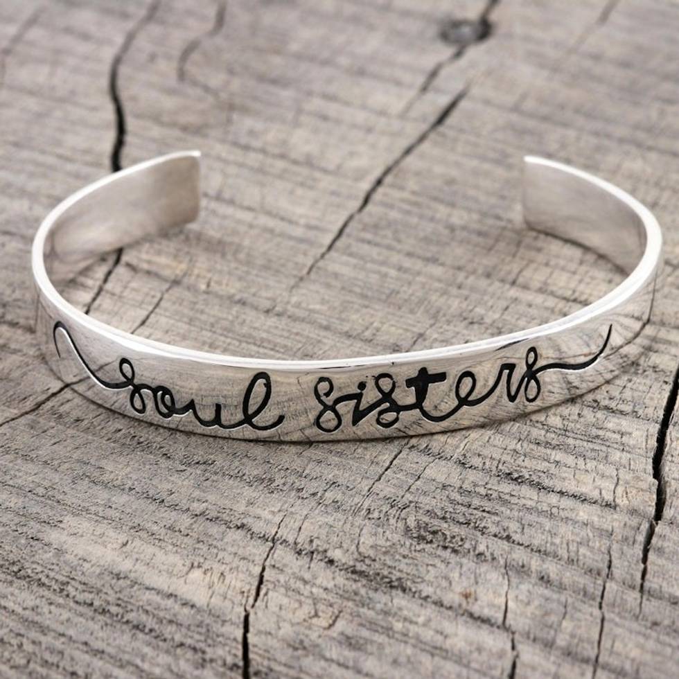 Hand Crafted Sterling Silver Cuff Bracelet 'Soul Sisters' Item ID: 2671789665