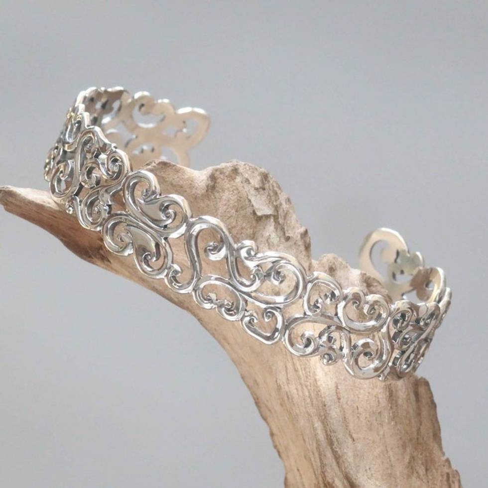 Hand Crafted Sterling Silver Cuff Bracelet with Floral Motif 'Elegant Fern' Item ID: 2669923305