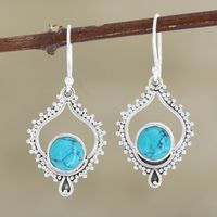 Hand Crafted Sterling Silver Dangle Earrings 'Blissful Night in Turquoise' Item ID: 2671787547