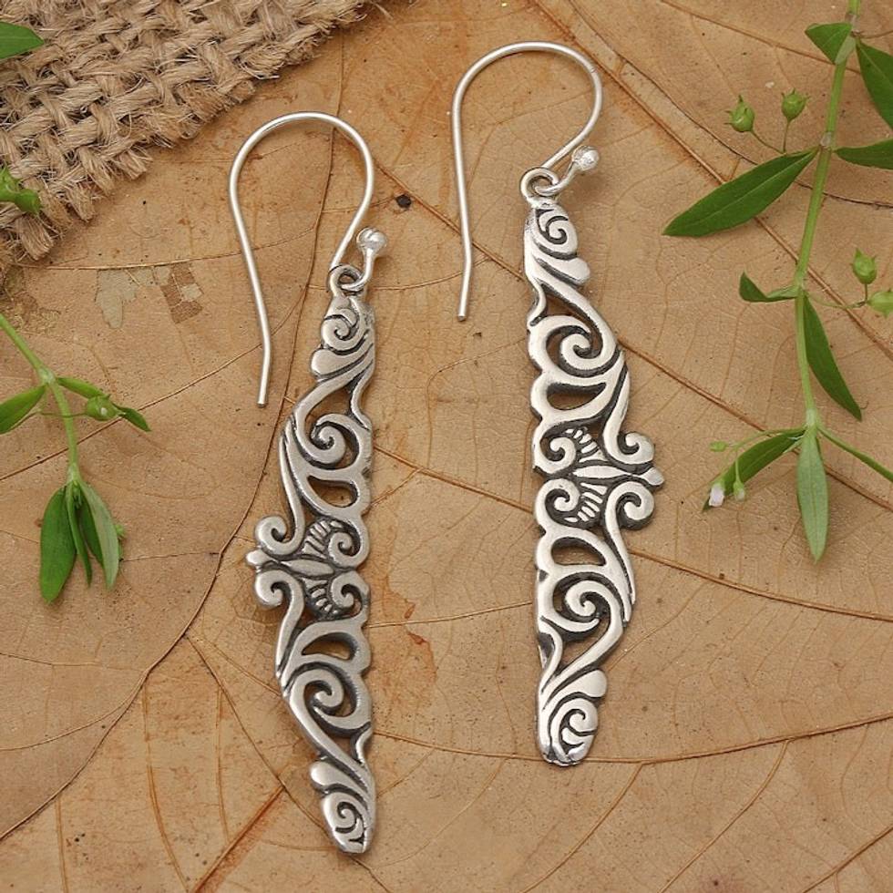 Hand-Crafted Sterling Silver Dangle Earrings from Bali 'Floral Tie' Item ID: 2671734891