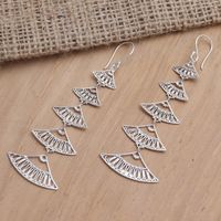 Hand Crafted Sterling Silver Dangle Earrings 'Hand Fan' Item ID: 2671745137