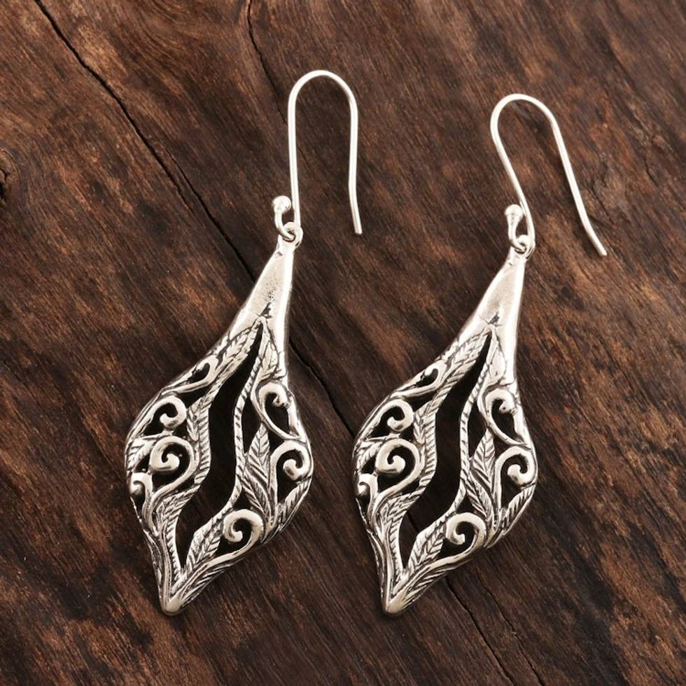Hand Crafted Sterling Silver Dangle Earrings 'Leafy Chasm' Item ID: 2671789997