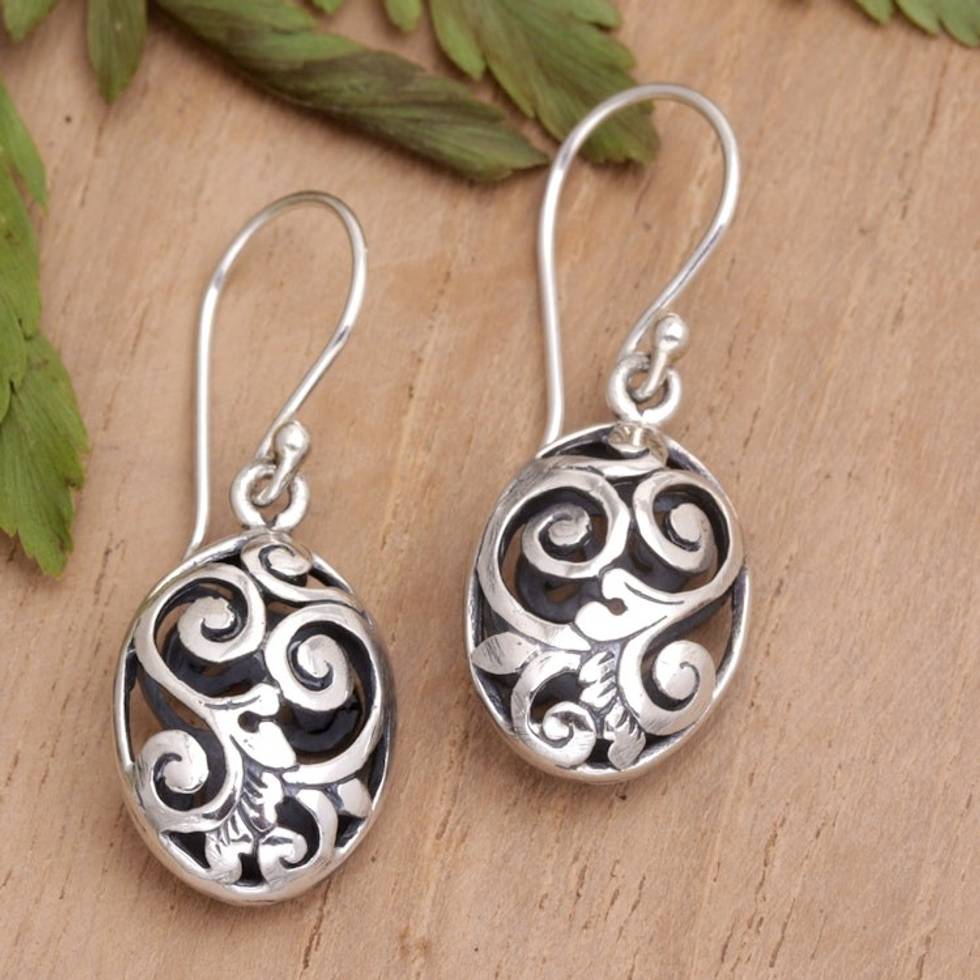Hand Crafted Sterling Silver Dangle Earrings 'Petite Karangasem Castle' Item ID: 2671699510