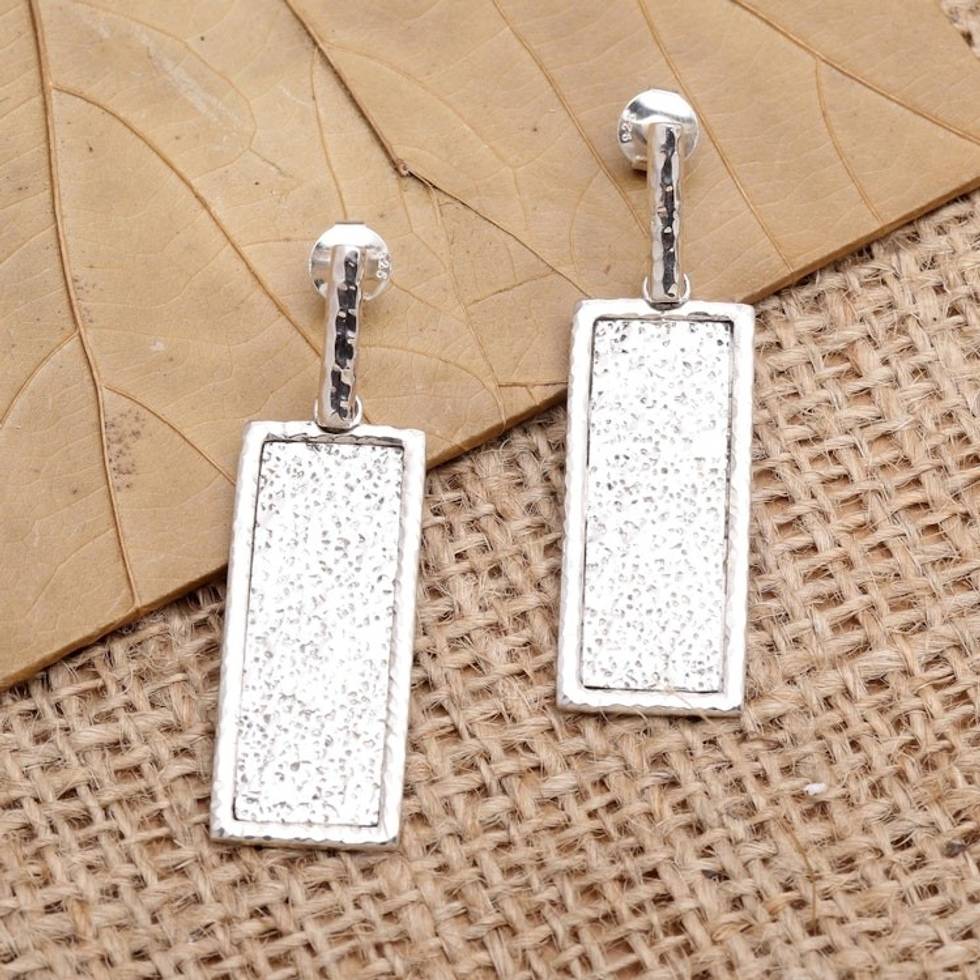 Hand Crafted Sterling Silver Dangle Earrings 'Reflecting Mirror' Item ID: 2671745586