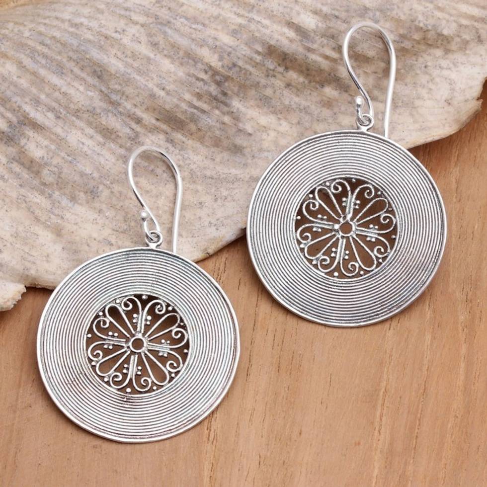 Hand Crafted Sterling Silver Dangle Earrings 'Spin a Story' Item ID: 2671748809