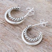 Hand Crafted Sterling Silver Drop Earrings 'Braided Crescent' Item ID: 2671800303