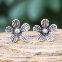 Hand Crafted Sterling Silver Floral Button Earrings 'Striped Flowers' Item ID: 2669927654