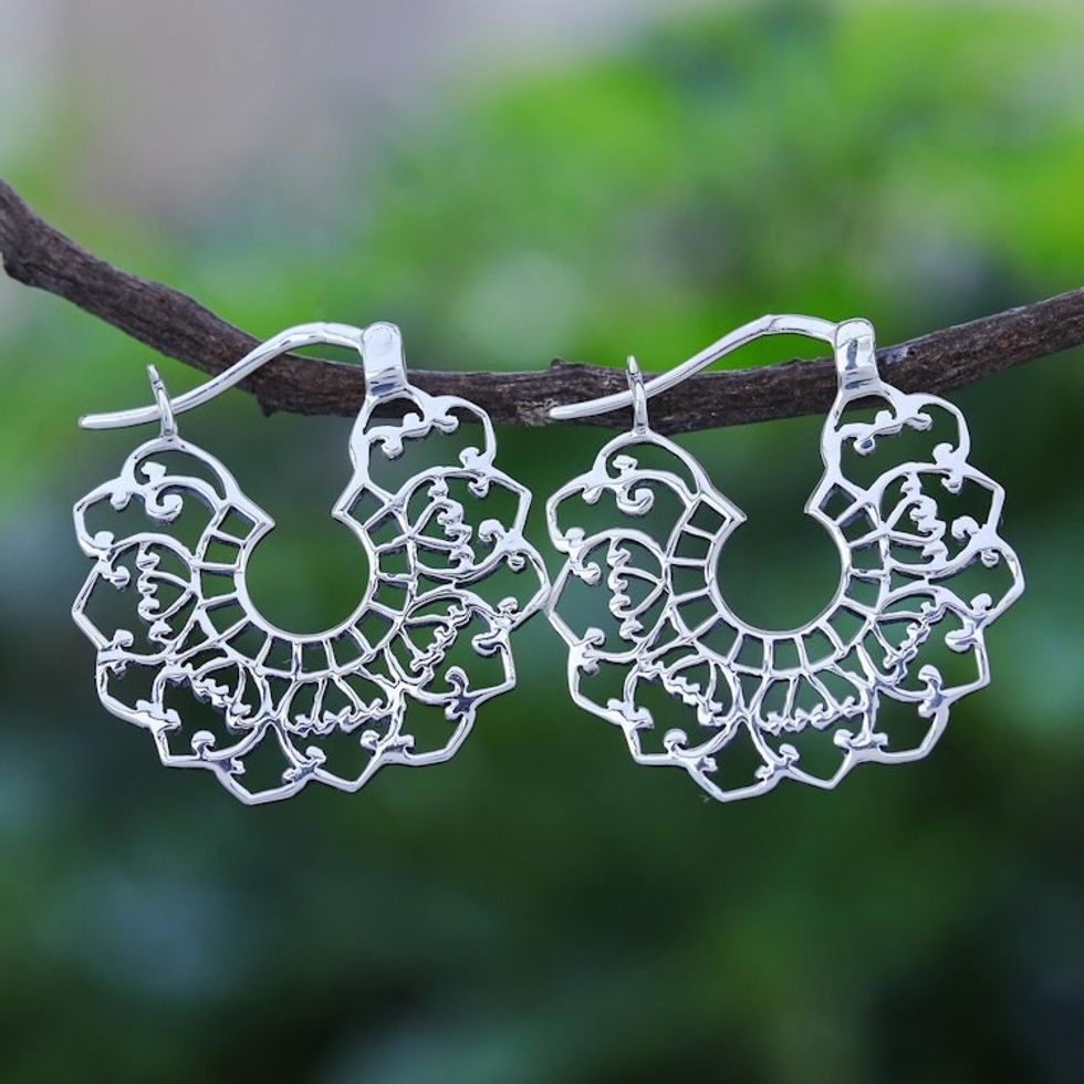 Hand Crafted Sterling Silver Hoop Earrings 'Eternal Life' Item ID: 2671799945