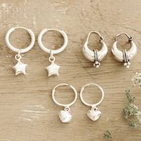 Hand Crafted Sterling Silver Hoop Earrings 'Heart and Star' Item ID: 2671788515